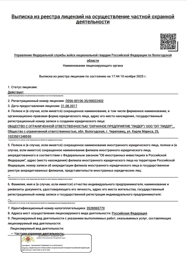 Охранное Предприятие Лидер